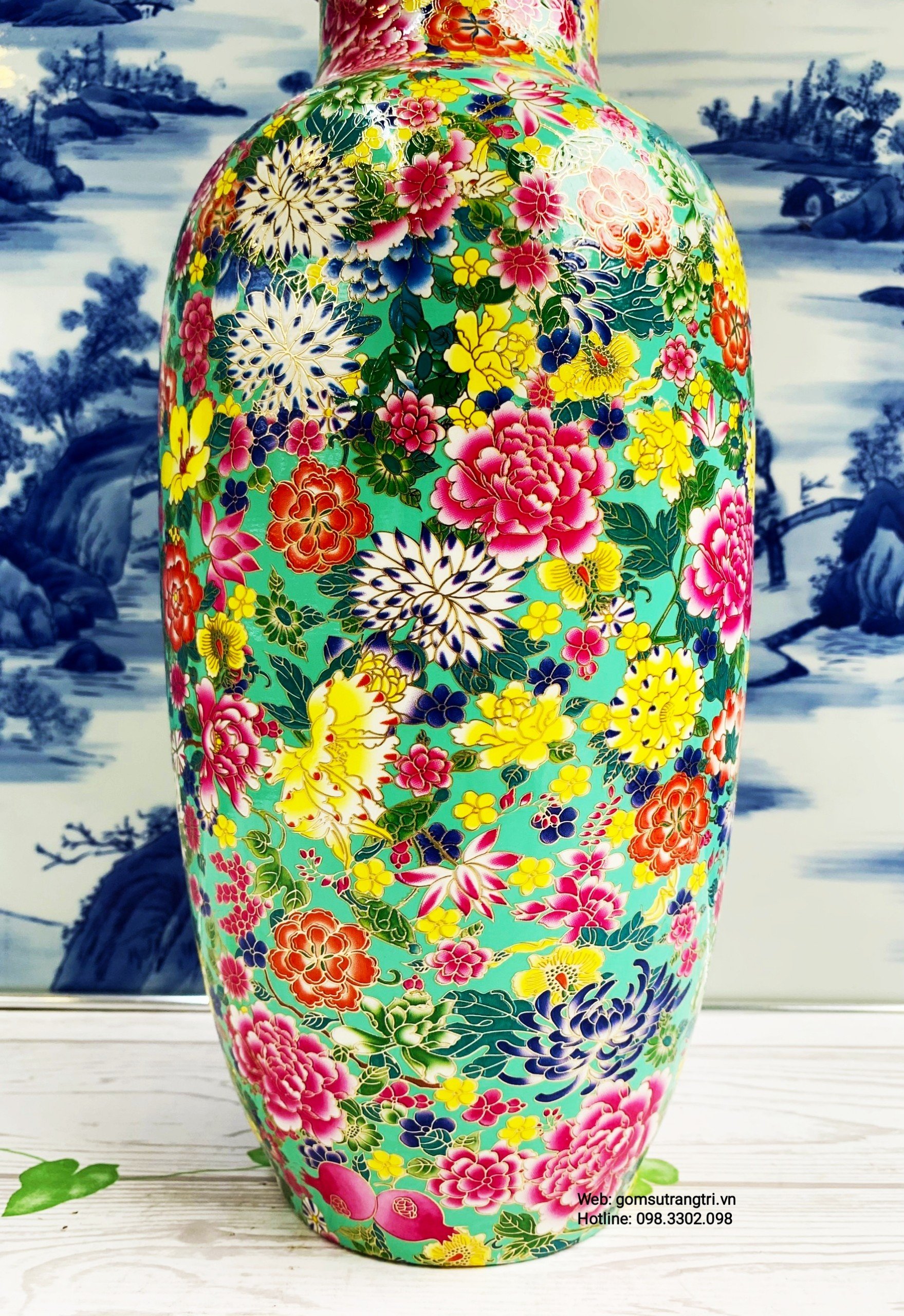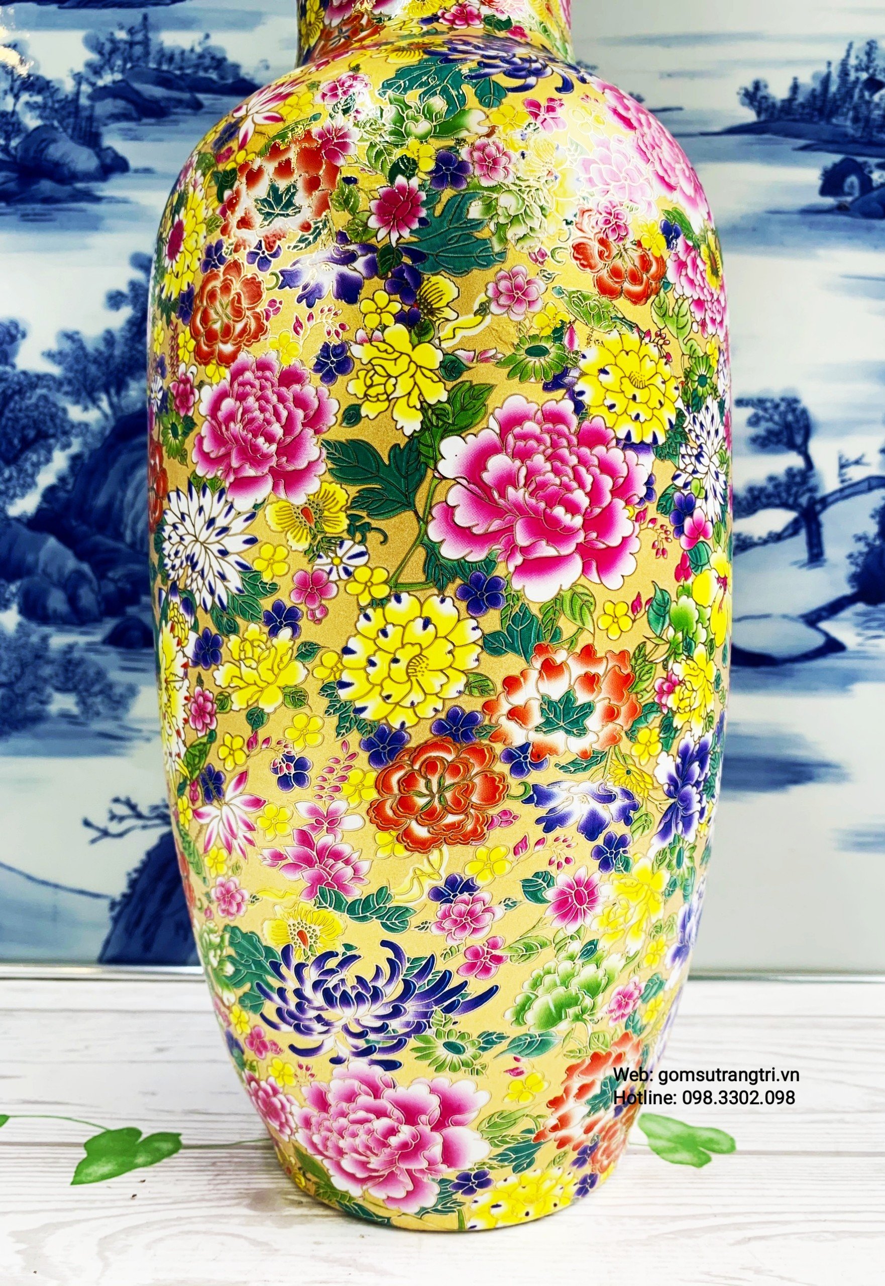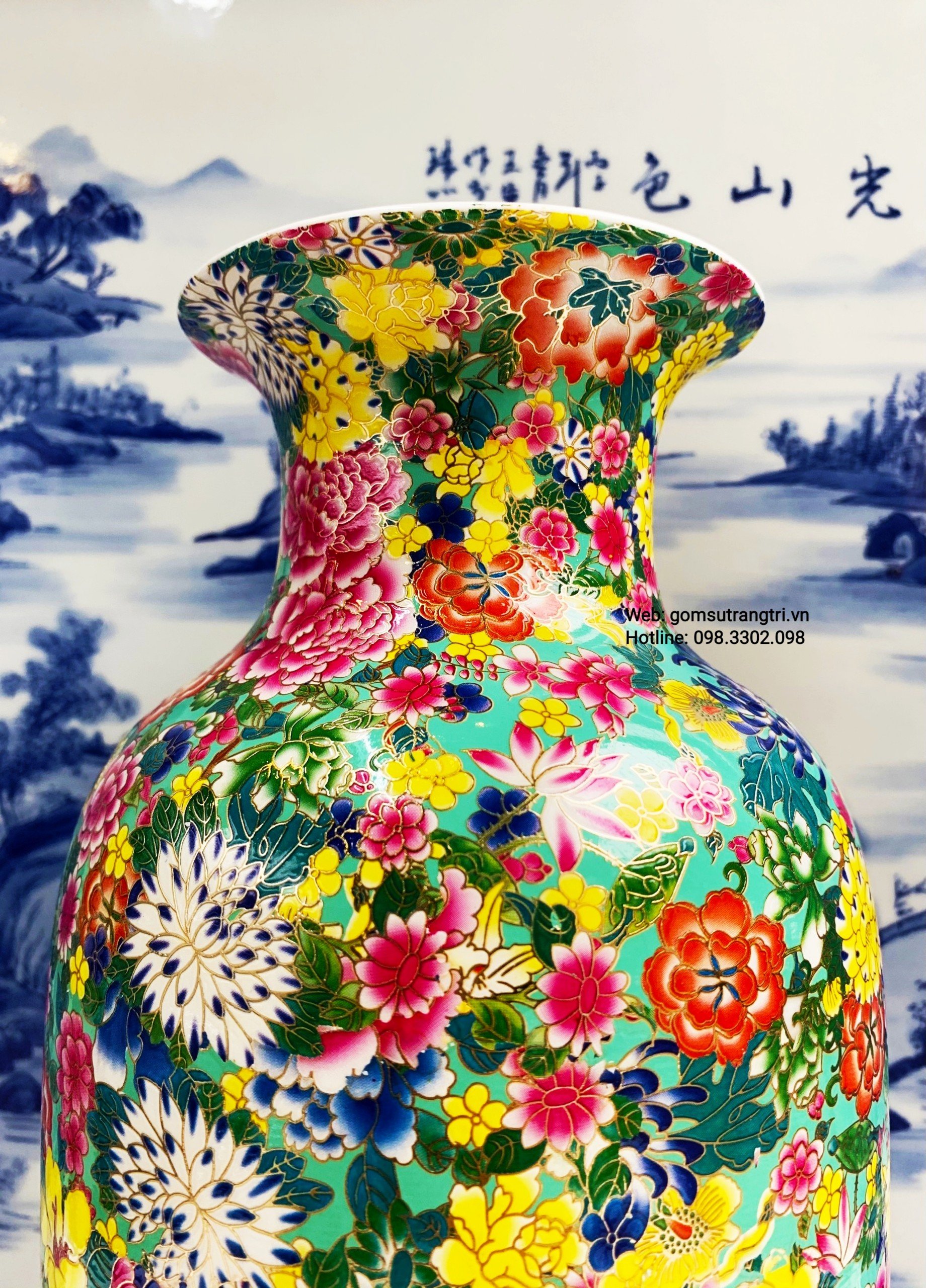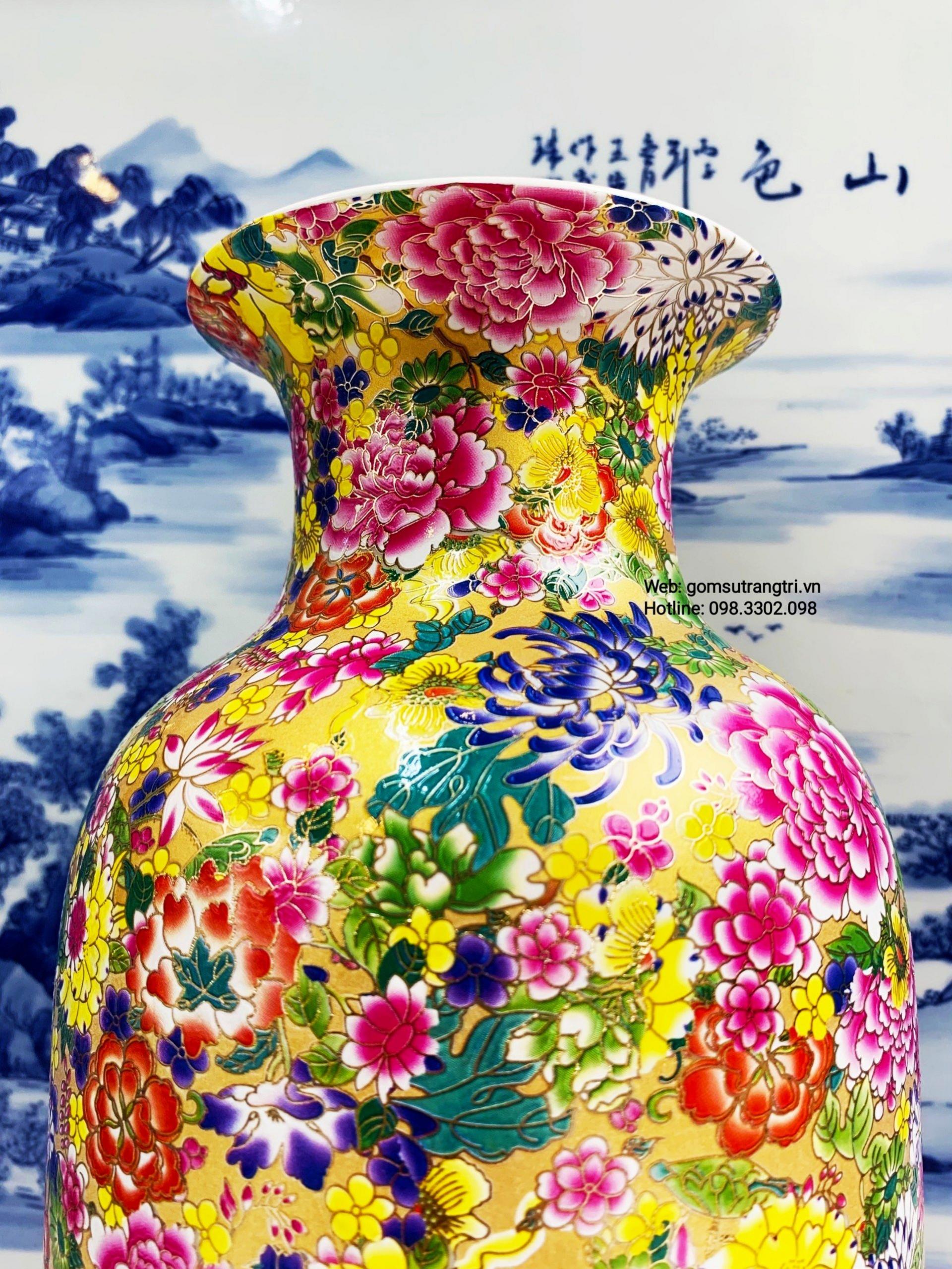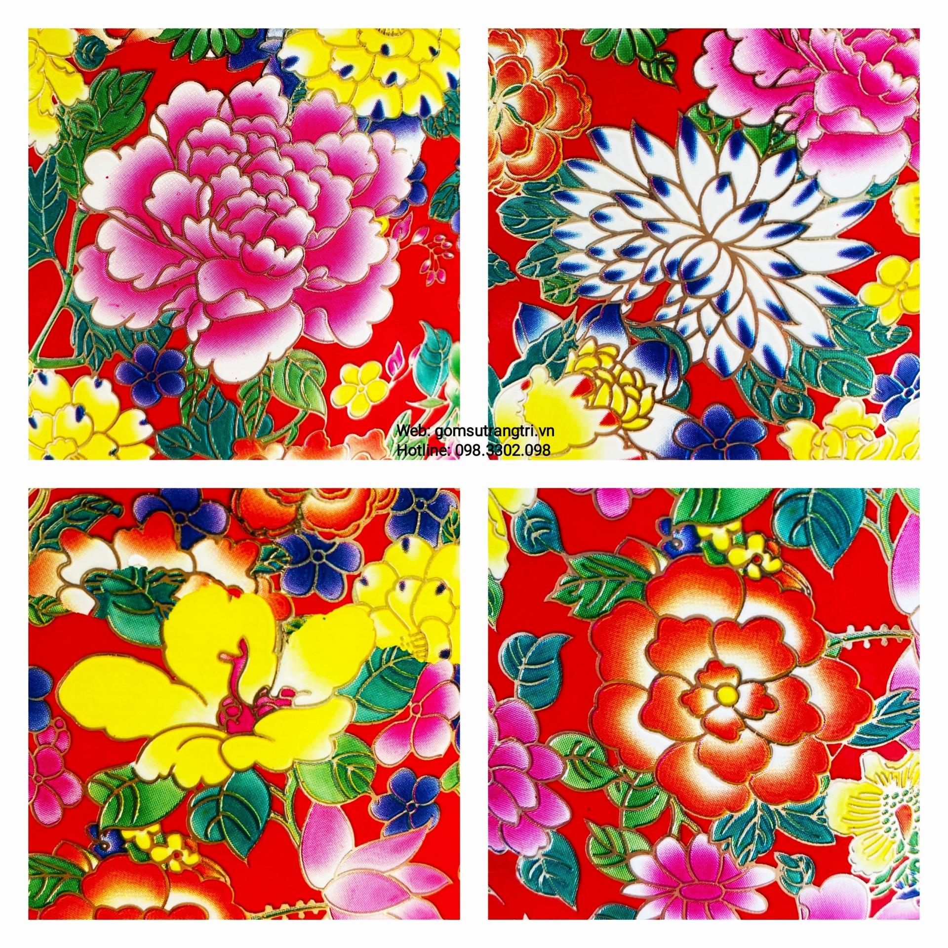 Dưới nền đỏ, người nghệ nhân đã khéo léo, tỉ mỉ tạo ra Bình Bách Hoa với rất nhiều màu sắc của các loài hoa đang đua nhau khoe sắc hương vô cùng đẹp mắt, tính xảo và mang nhiều ý nghĩa.