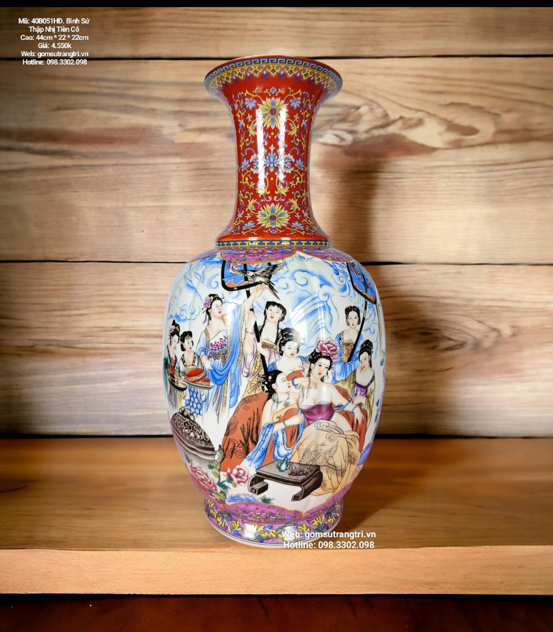BÌNH SỨ THẬP NHỊ TIÊN CÔ – Một sản phẩm đẹp xuất sắc của nhà Gốm Sứ Trang Trí
