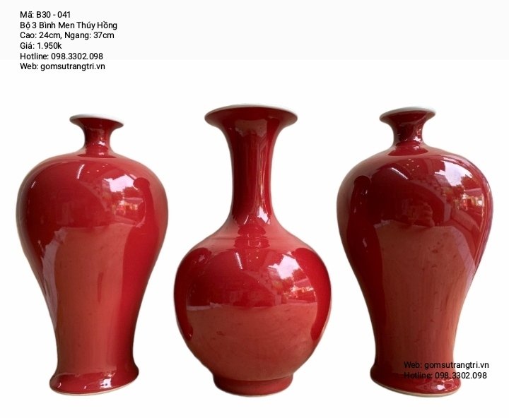 Các nghệ nhân gốm sứ đã dày công khổ luyện để tạo ra Bộ 3 Bình Men Thúy Hồng vô cùng điêu luyện, đẹp mắt và tính xảo mang rất nhiều giá trị và ý nghĩa.