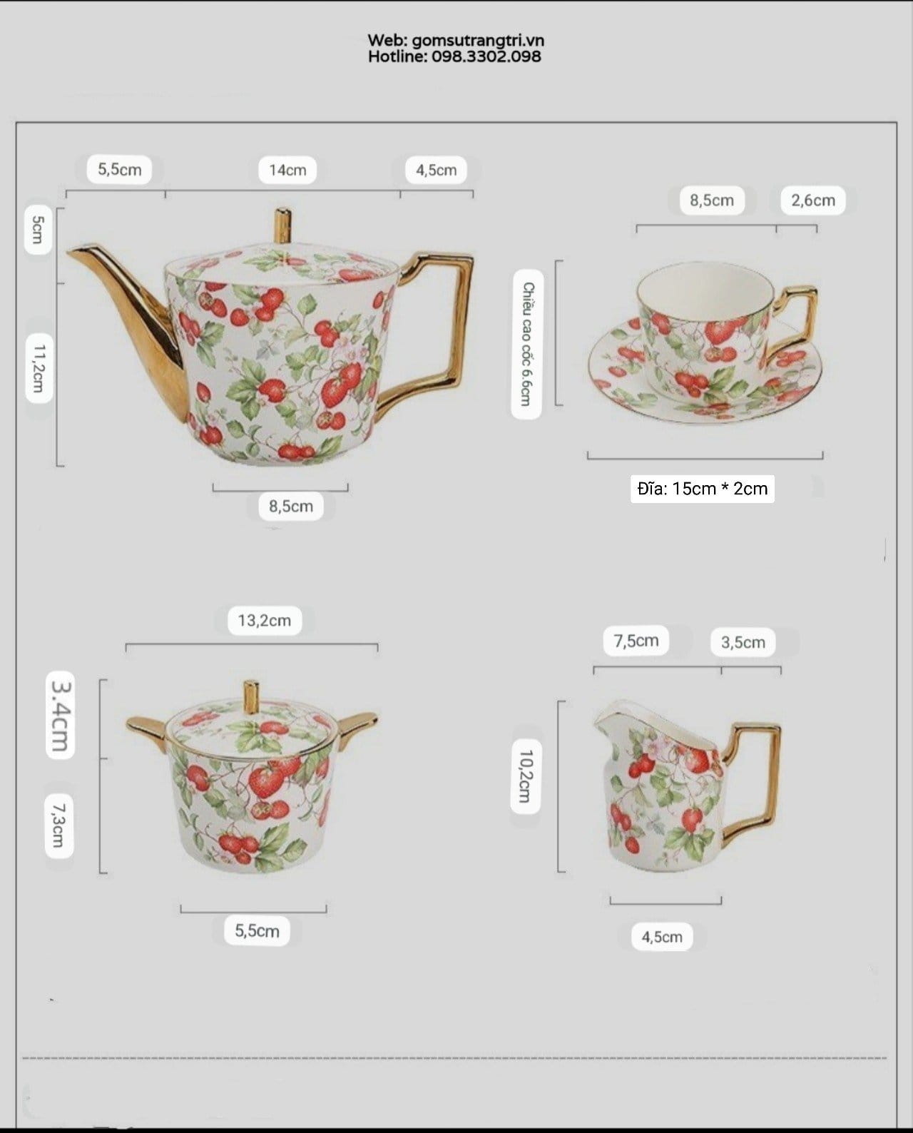 BỘ ẤM CHÉN DÂU TÂY CAO CẤP