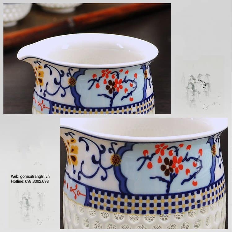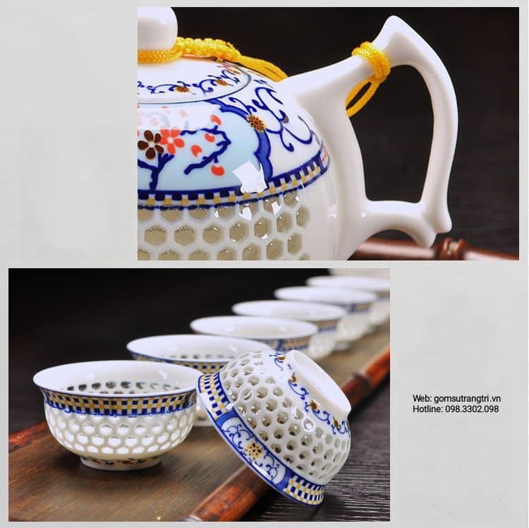 BỘ ẤM CHÉN THẤU QUANG HOA ĐÀO