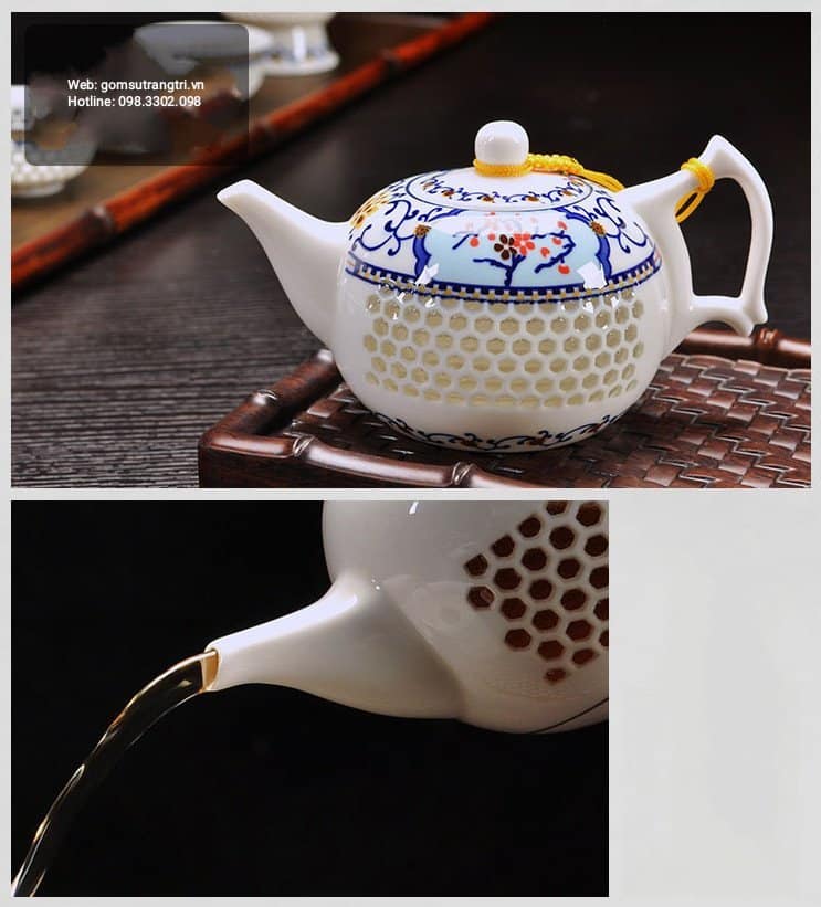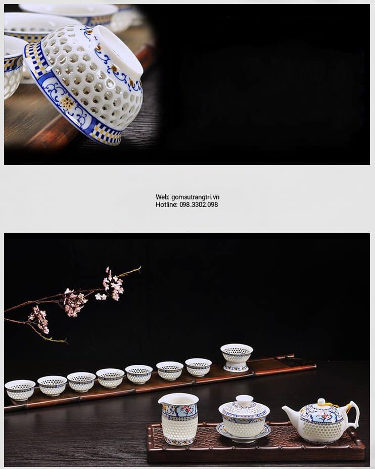 - Đây là bộ trà cao cấp và độc đáo được làm từ chất liệu Sứ cao cấp , bộ trà thuộc dòng THẤU QUANG có nghĩa là ánh sáng xuyên qua soi thấu nhân tình thế thái. Bộ trà phản ánh gu thẩm mỹ độc đáo của bạn cũng như tâm tư bạn đặt trong món quà bạn dành tặng người khác .