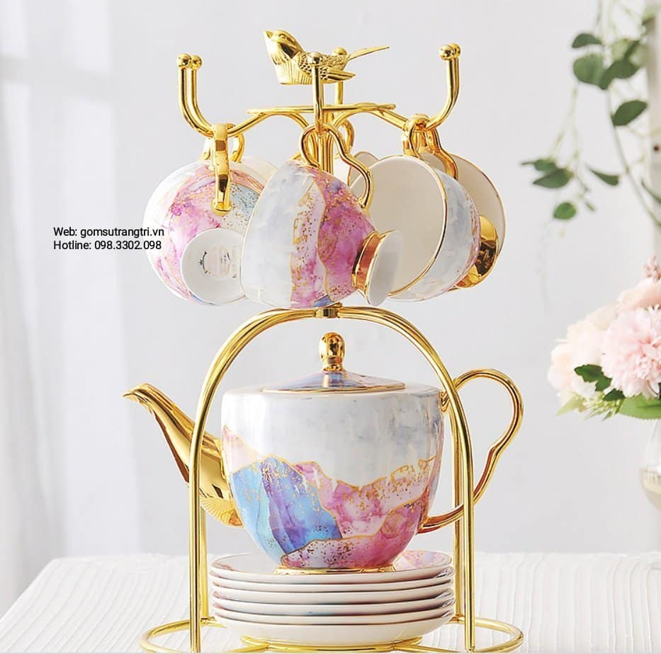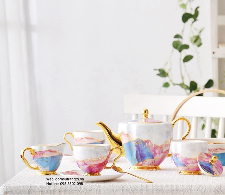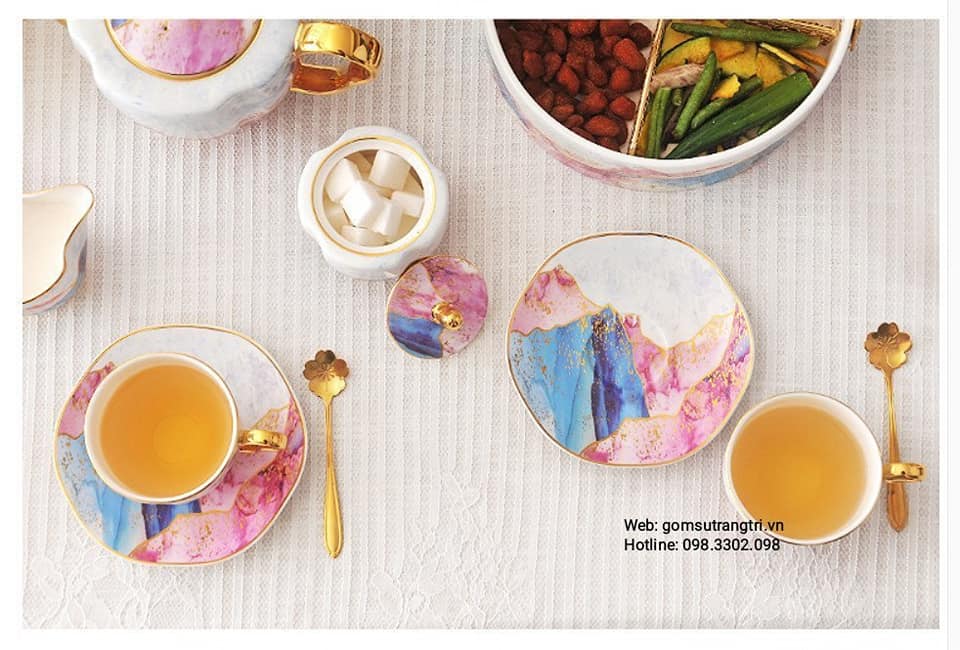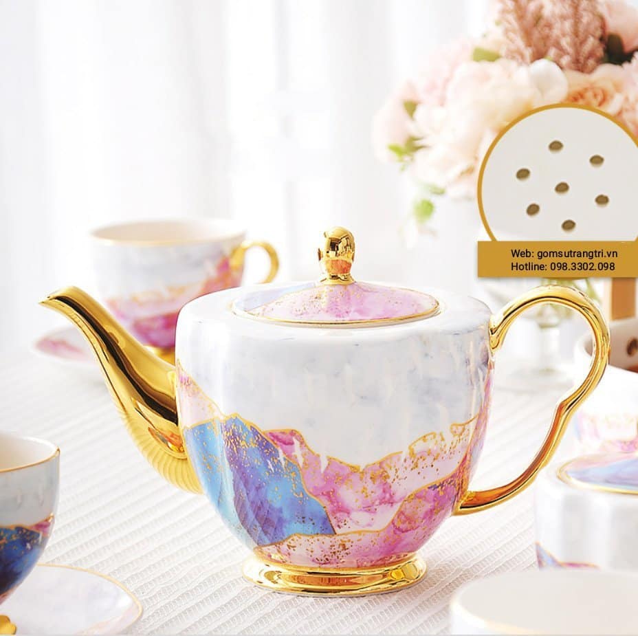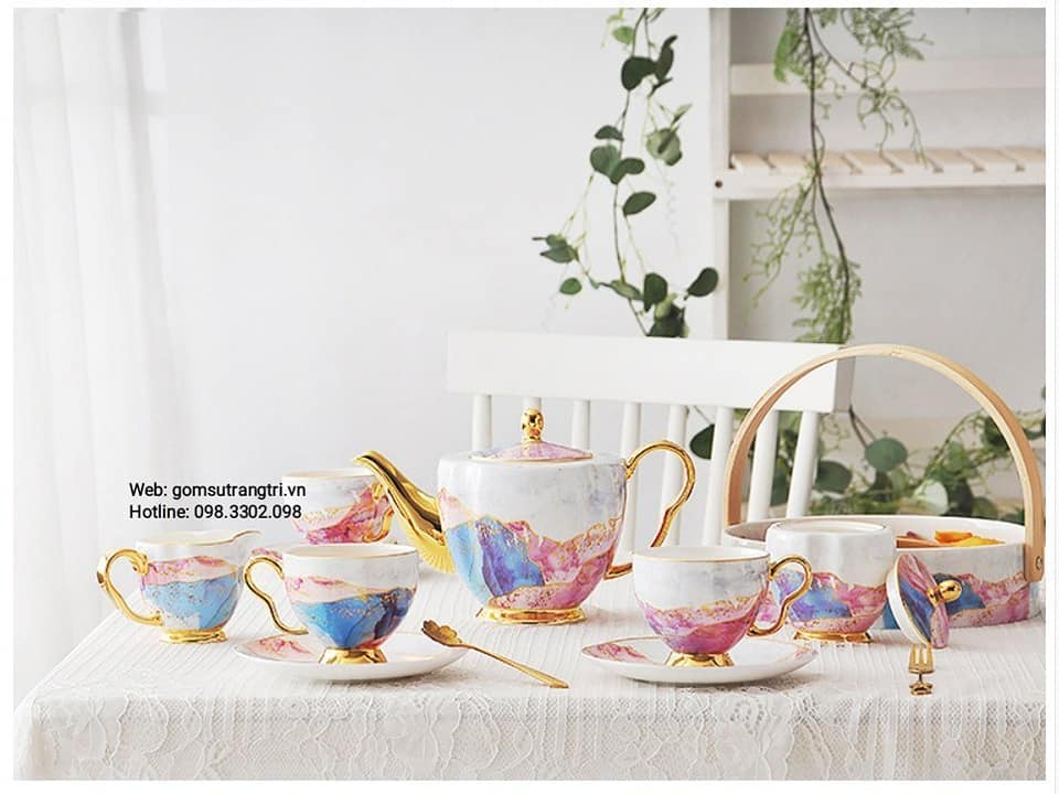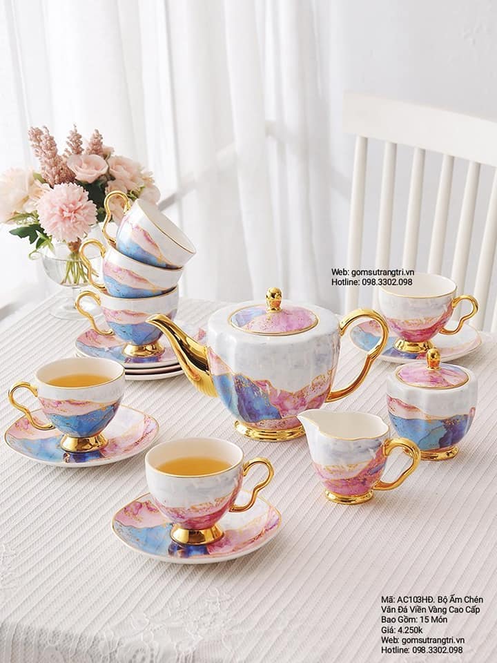 - Tiệm Gốm Sứ Trang Trí lại về BỘ ẤM CHÉN VÂN ĐÁ VIỀN VÀNG CAO CẤP cho cả nhà tha hồ mua sắm cho Trung Thu thêm rực rỡ đây ạ.
