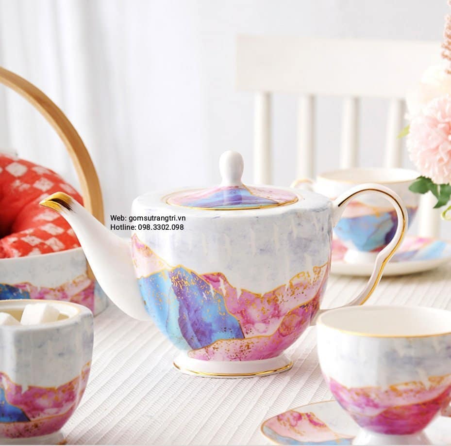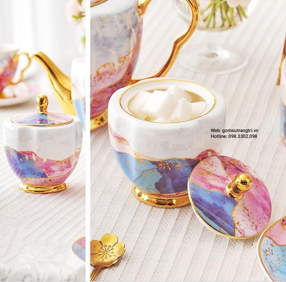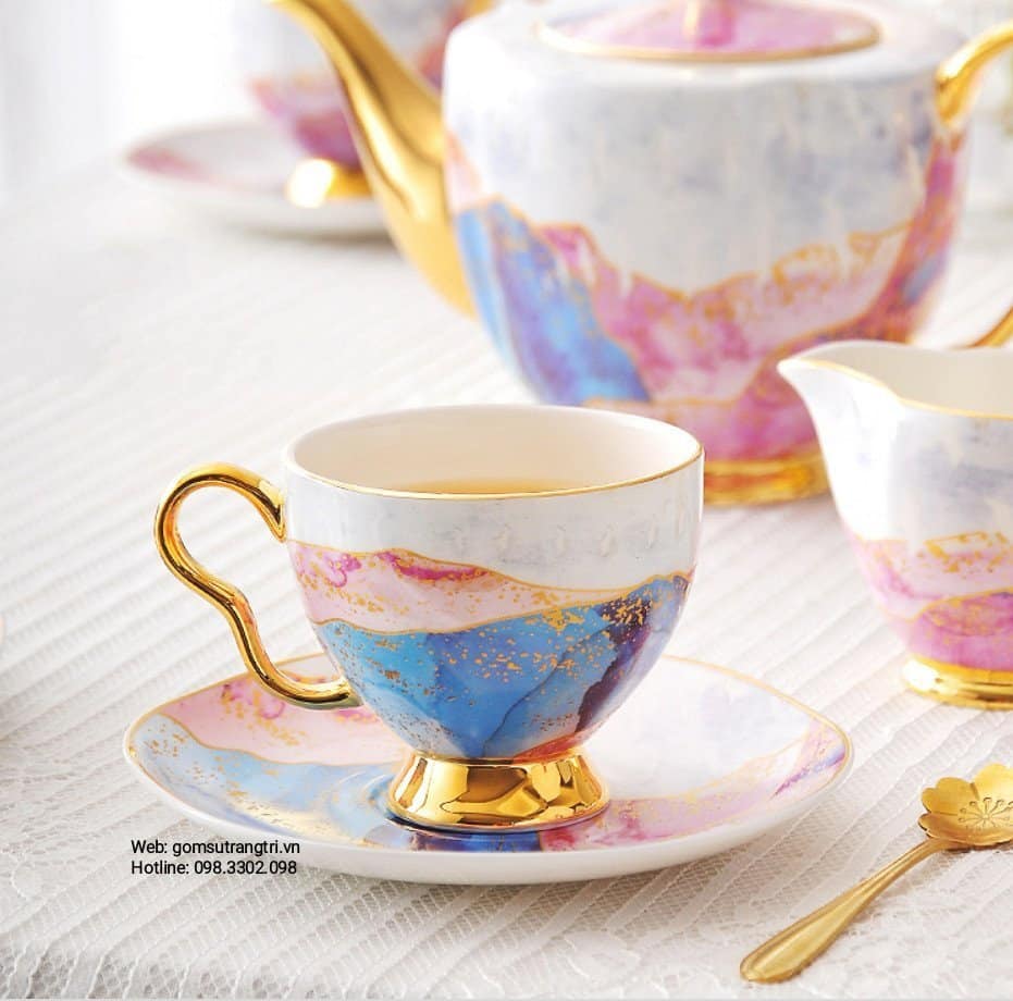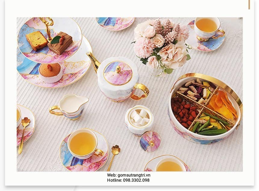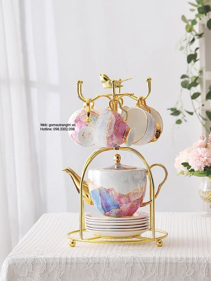 - Tiệm Gốm Sứ Trang Trí lại về BỘ ẤM CHÉN VÂN ĐÁ VIỀN VÀNG CAO CẤP cho cả nhà tha hồ mua sắm cho Trung Thu thêm rực rỡ đây ạ.