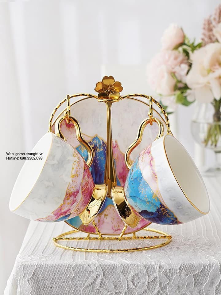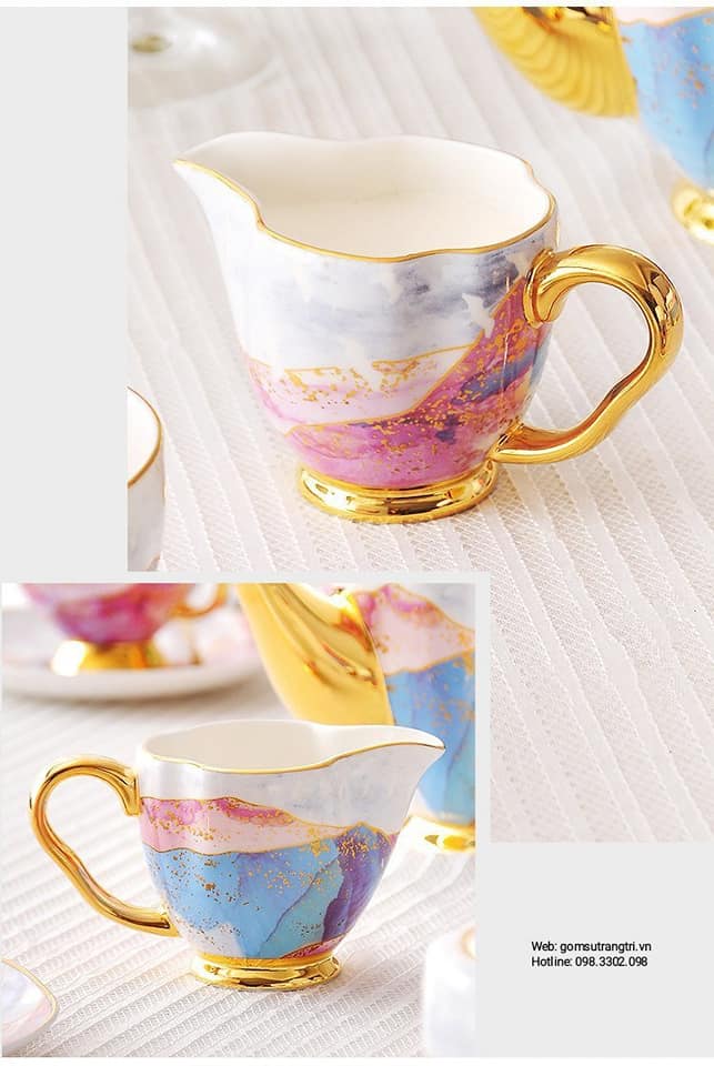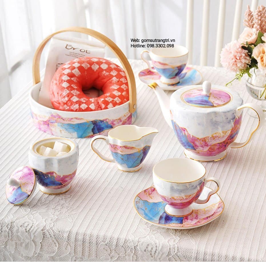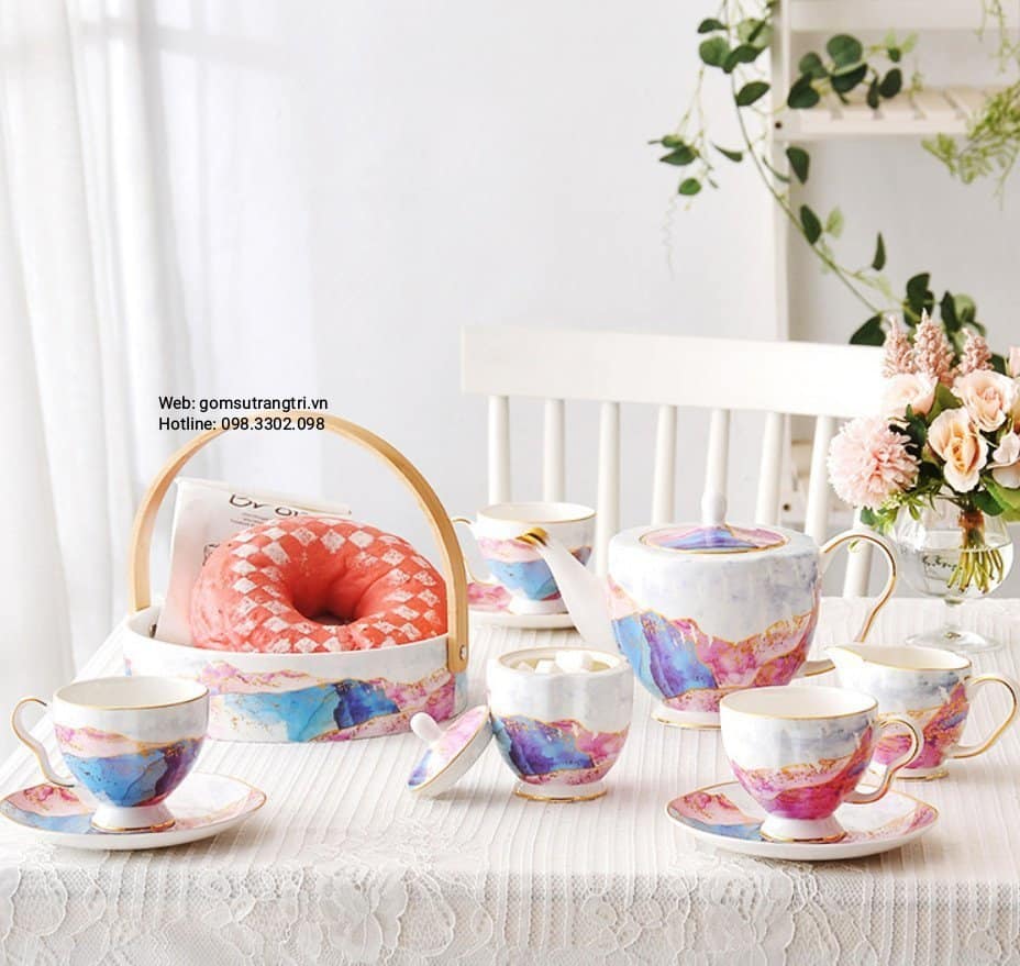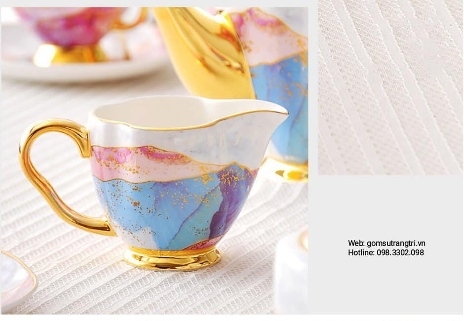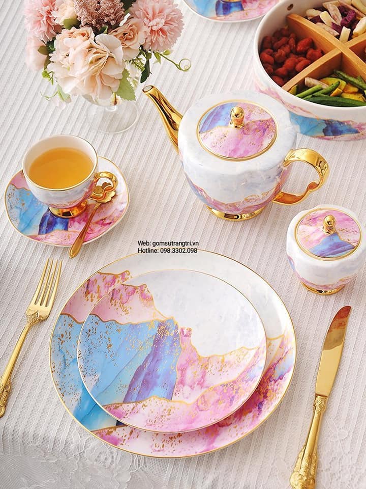 - Tiệm Gốm Sứ Trang Trí lại về BỘ ẤM CHÉN VÂN ĐÁ VIỀN VÀNG CAO CẤP cho cả nhà tha hồ mua sắm cho Trung Thu thêm rực rỡ đây ạ.