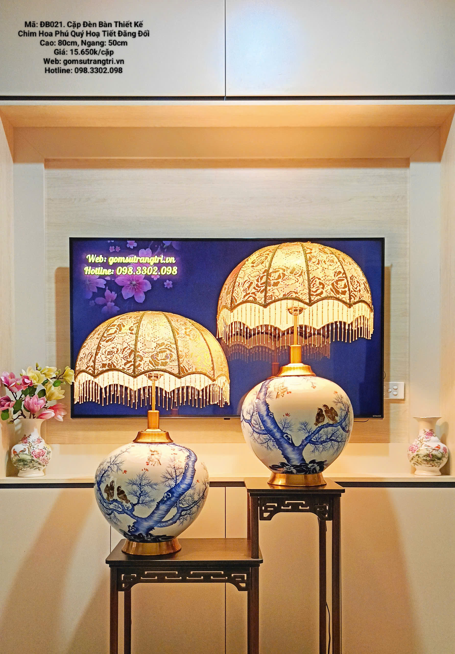 CẶP ĐÈN BÀN THIẾT KẾ CHIM HOA PHÚ QUÝ HỌA TIẾT ĐĂNG ĐỐI