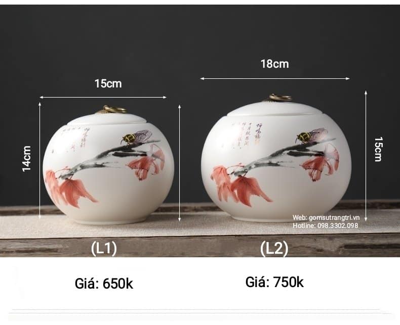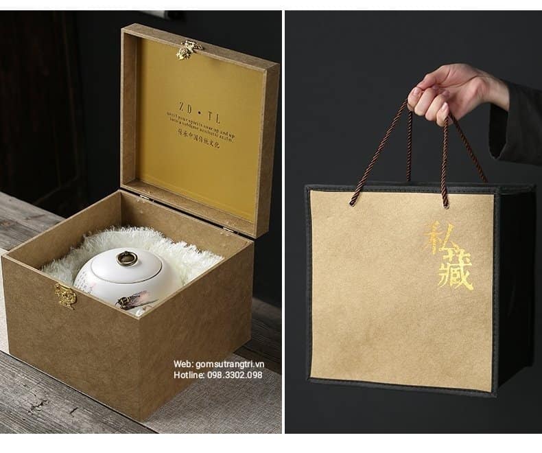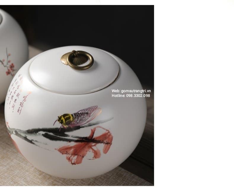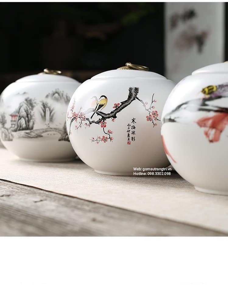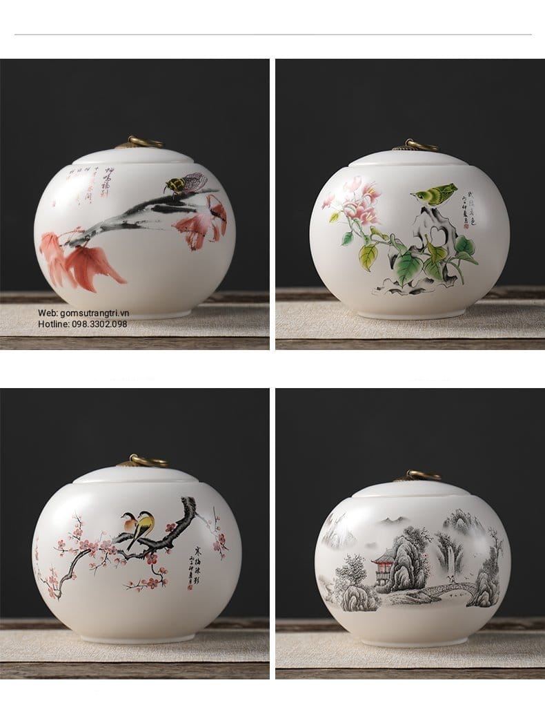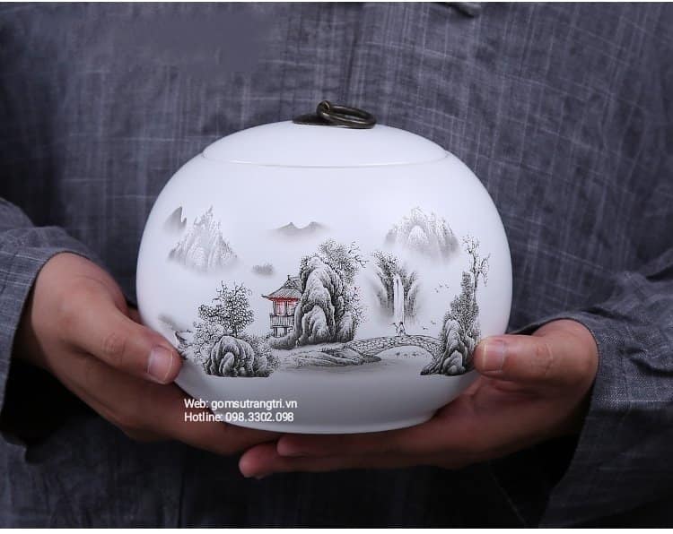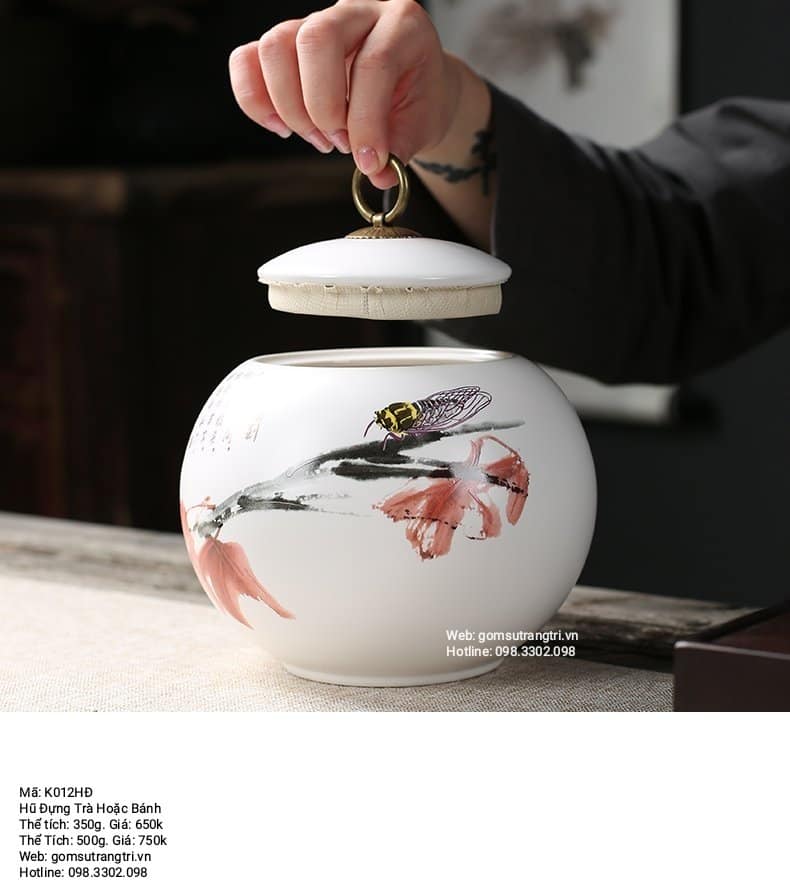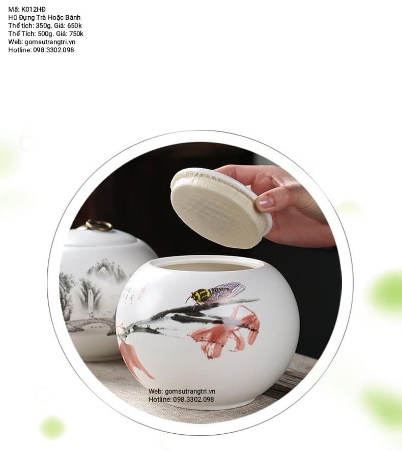 - Hũ đựng Trà và Bánh sứ cao cấp được chế tác thủ công từ chất liệu sứ cao cấp không ảnh hưởng tới sức khỏe người sử dụng. Với kích thước phù hợp, nắp đậy được thiết kế kín để không làm mất đi hương thơm của trà, bánh