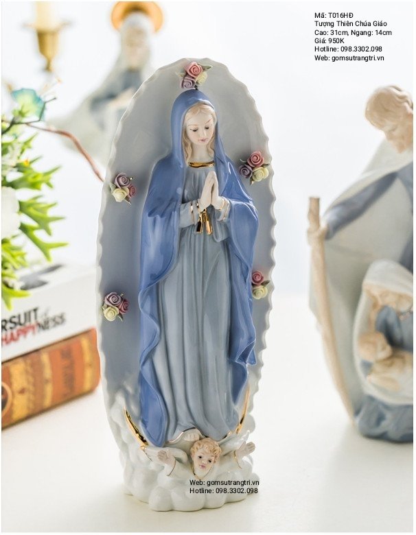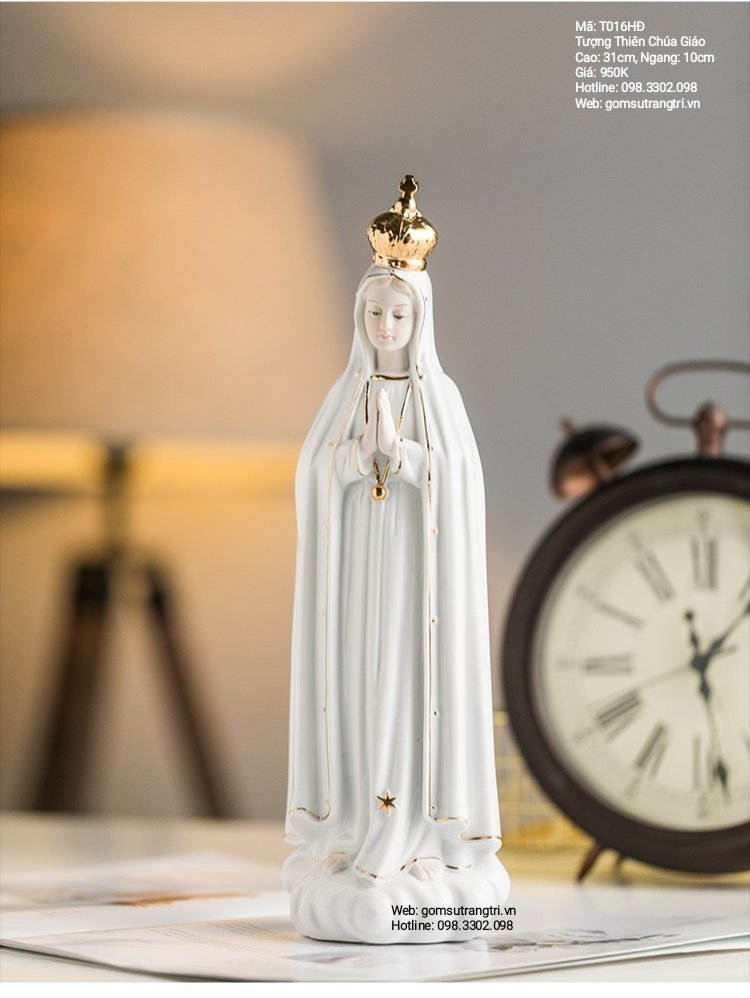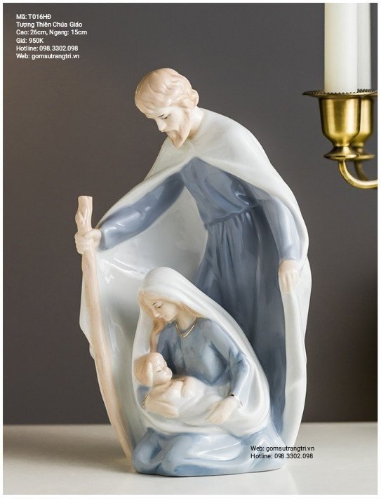 Đá, gốm, sứ là loại nguyên liệu thông dụng để sản xuất các sản phẩm trang trí, các bức tượng. Tượng thờ bằng gốm, sứ cũng là lựa chọn được nhiều gia đình theo đạo yêu thích. Qua đó, các đường nét của từng bức tượng vẫn được nguyên liệu gốm sứ thể hiện hết sức tinh tế và tỉ mỉ. Tượng Thiên Chúa Giáo thể hiện tấm lòng quý giá trân trọng của mỗi nghệ nhân khi tạo ra. Thông điệp được gửi gắm vào đó chính là vẻ đẹp văn hóa, tín ngưỡng sâu thẳm trong mỗi con người.