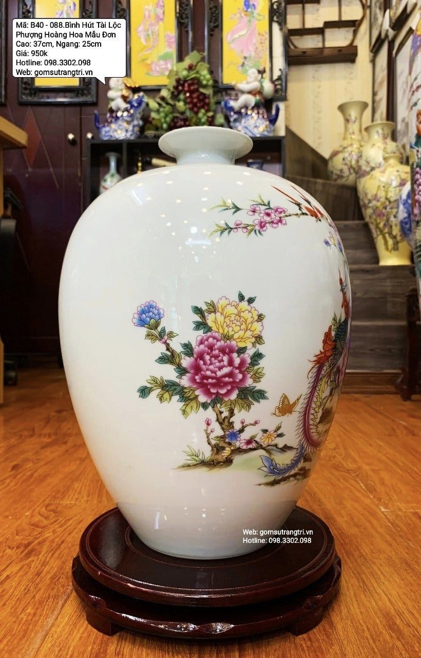Bình Hút Lộc Phượng Hoàng Hoa Mẫu Đơn - Sự lựa chọn hoàn hảo mang đến nét đẹp tinh tế cho mọi không gian.