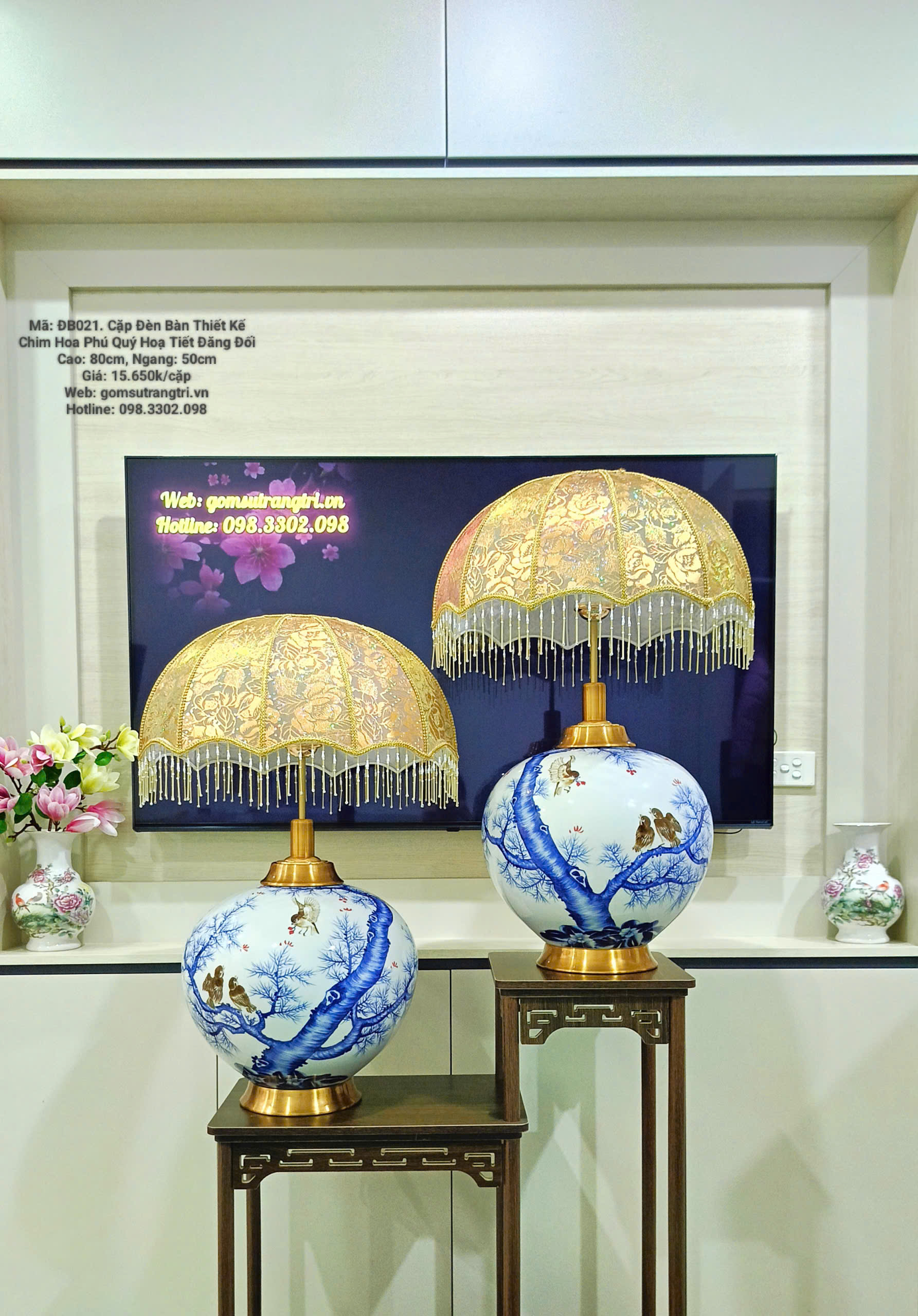CẶP ĐÈN BÀN THIẾT KẾ CHIM HOA PHÚ QUÝ HỌA TIẾT ĐĂNG ĐỐI
