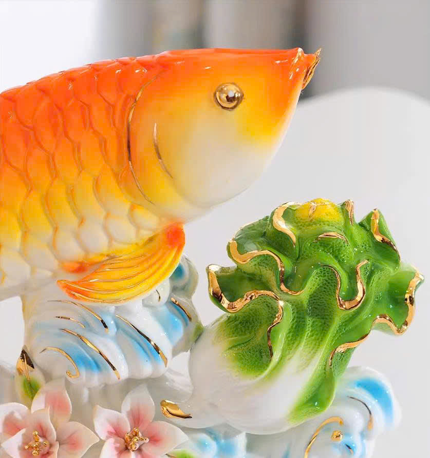 Mang ý nghĩa phong thủy tốt lành, tượng Cá Chép – Bắp Cải Tài Lộc là món đồ trang trí sang trọng, vừa đẹp mắt vừa tượng trưng cho may mắn – tài lộc – thịnh vượng trong gia đình và công việc.