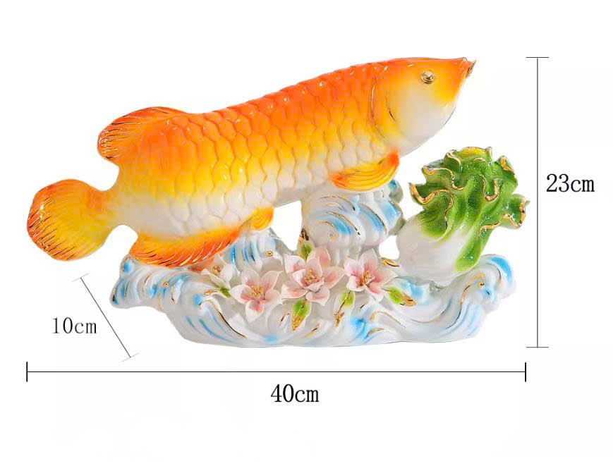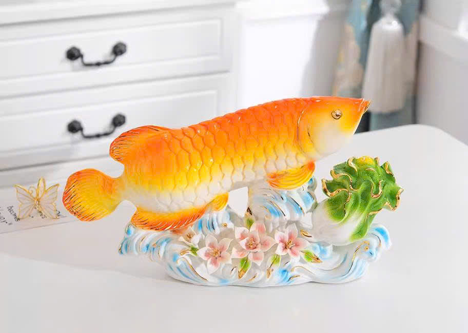 Cá chép được chế tác sống động với lớp men bóng cao cấp, sắc cam vàng rực rỡ, từng lớp vảy nổi bật đầy tinh xảo.