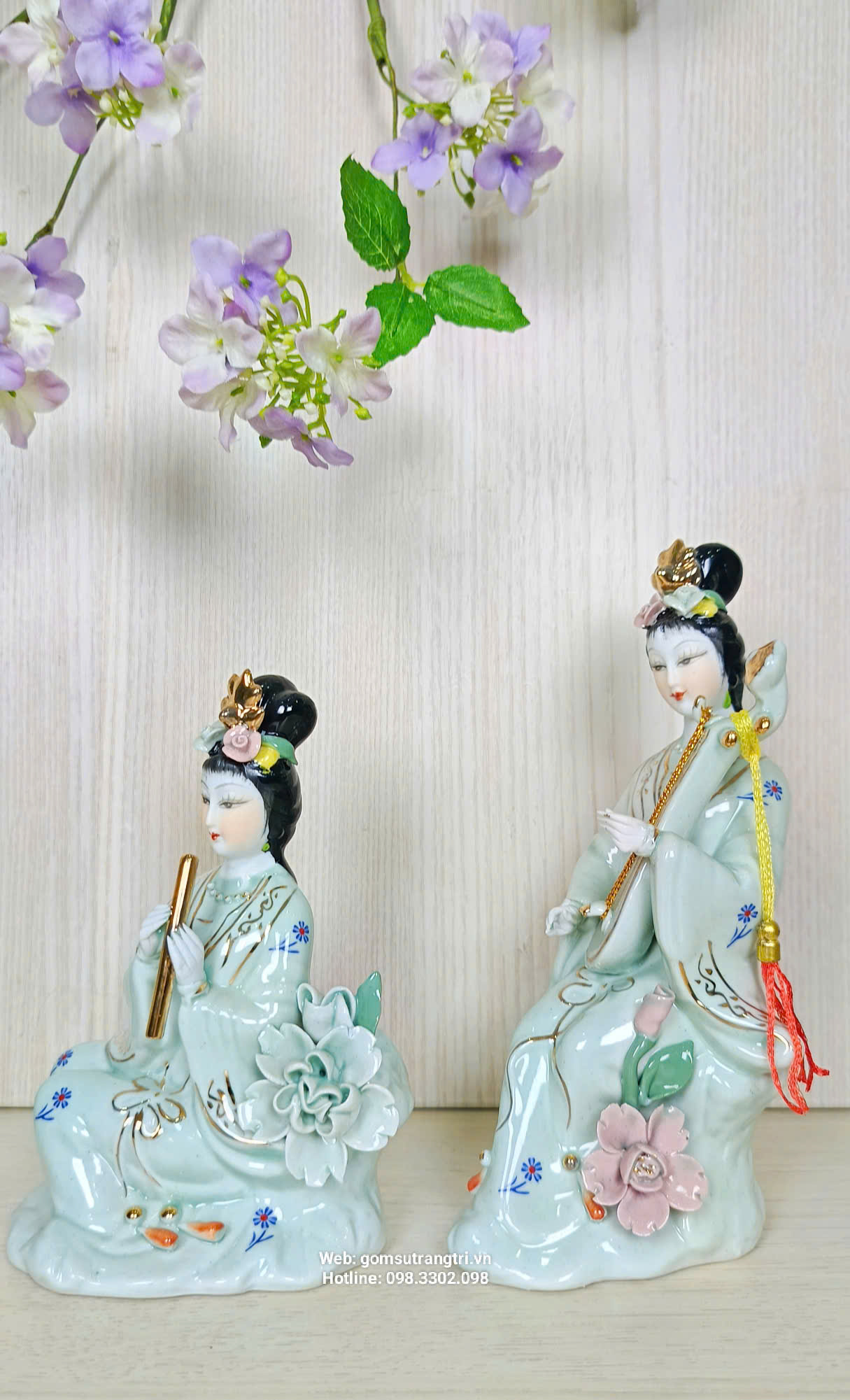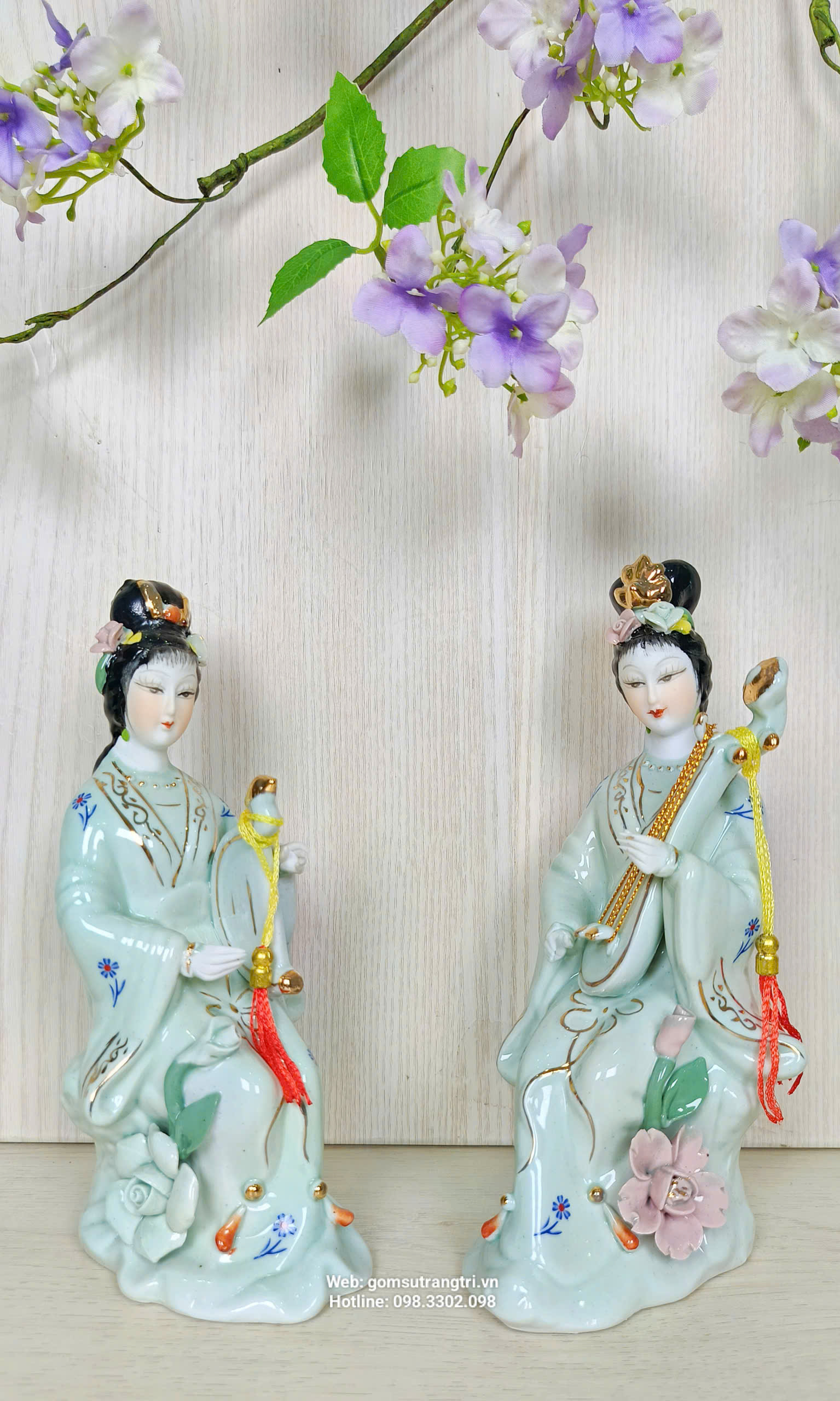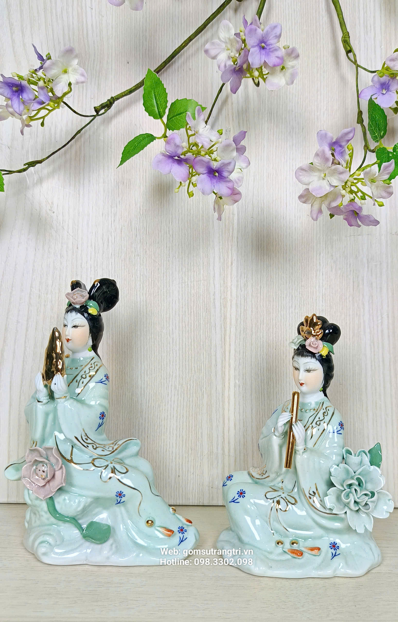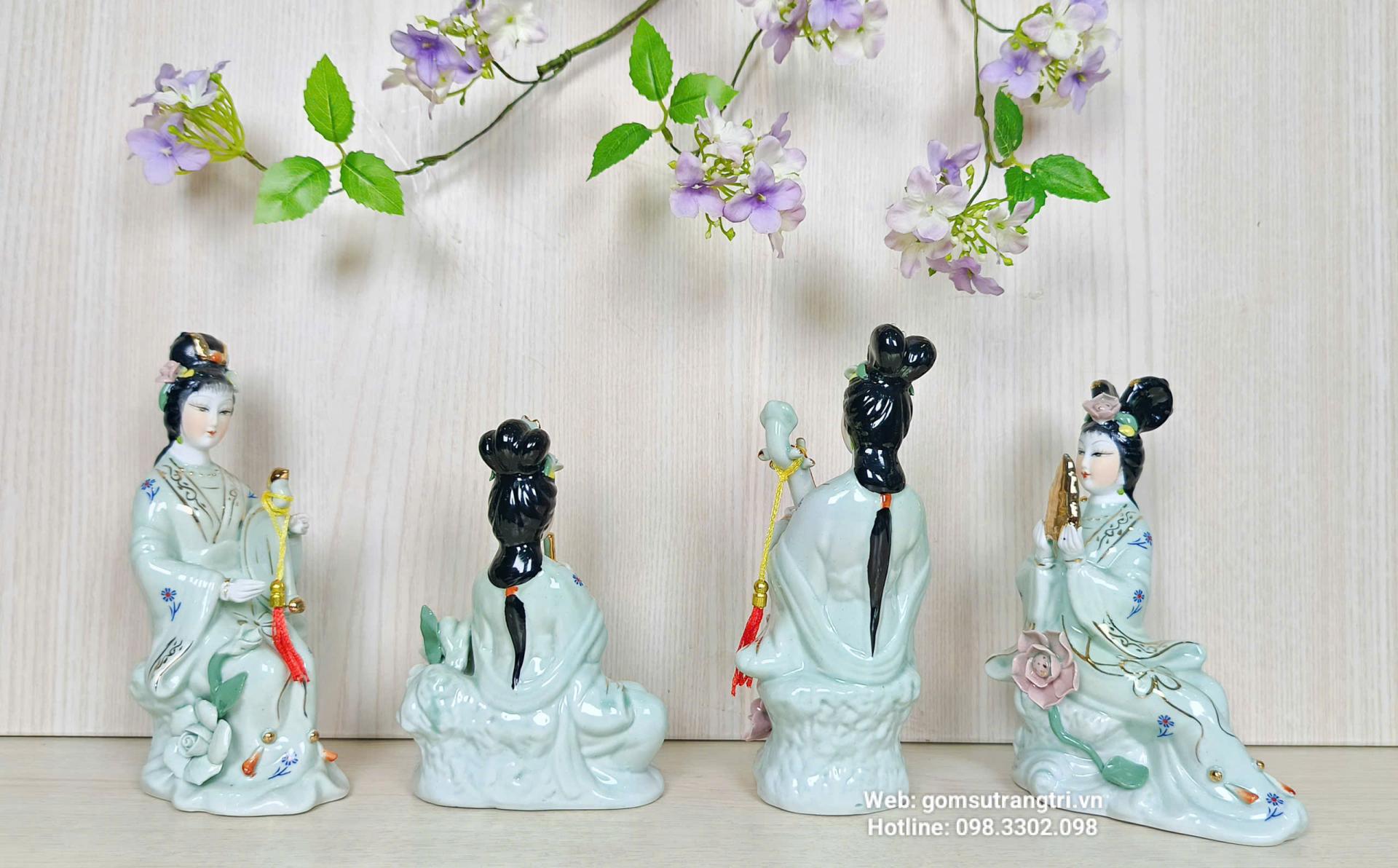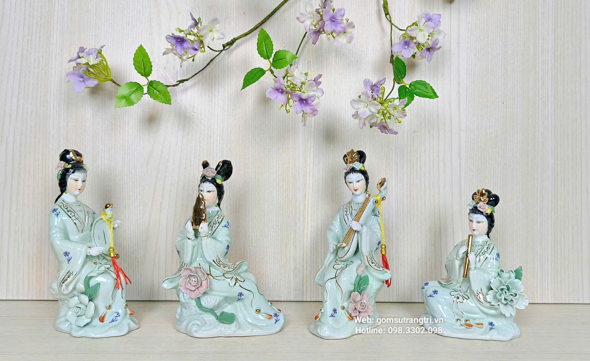 Bộ tượng gồm 4 tiên cô với dáng vẻ thanh thoát, mỗi vị cầm một nhạc cụ khác nhau tượng trưng cho: Hòa hợp – Bình an – Tài lộc – Thịnh vượng.